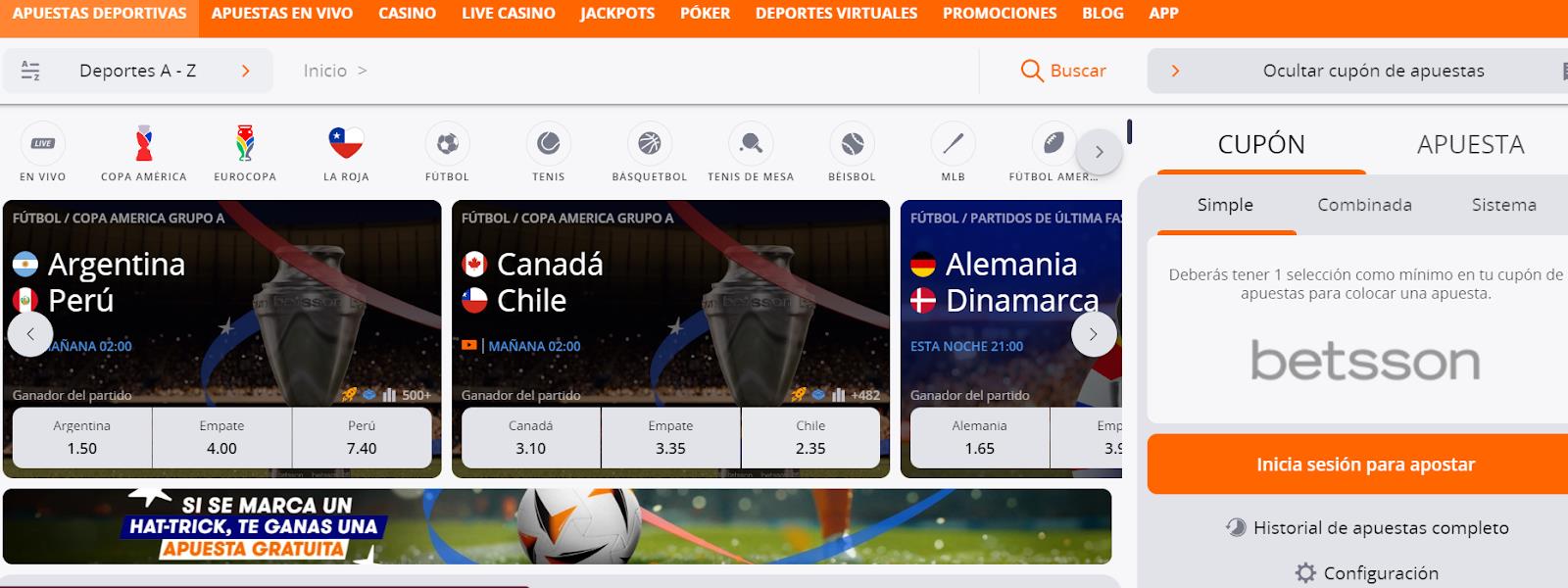 El diseño de Betsson es limpio y moderno, lo que facilita la navegación para los usuarios.