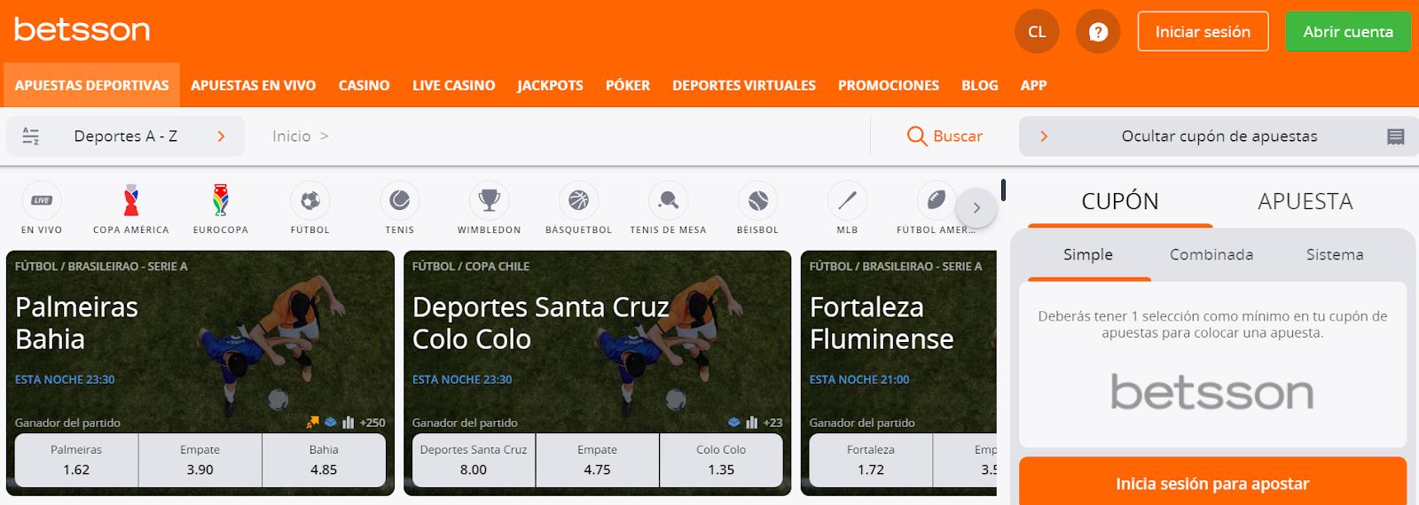 En Chile, la mayoría de los usuarios acuden a una review de Betsson para verificar la información del casino. En referencia a las ligas, en esta casa de apuestas han incrementado las apuestas en los principales deportes del país. Entre los más resaltantes se encuentran: