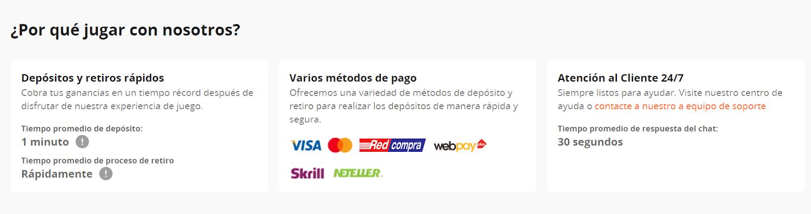 Los jugadores pueden solicitar un retiro a través de una transferencia bancaria a su cuenta bancaria. Entre los bancos disponibles se encuentran; BBVA, Banco Internacional y Banco Estado.