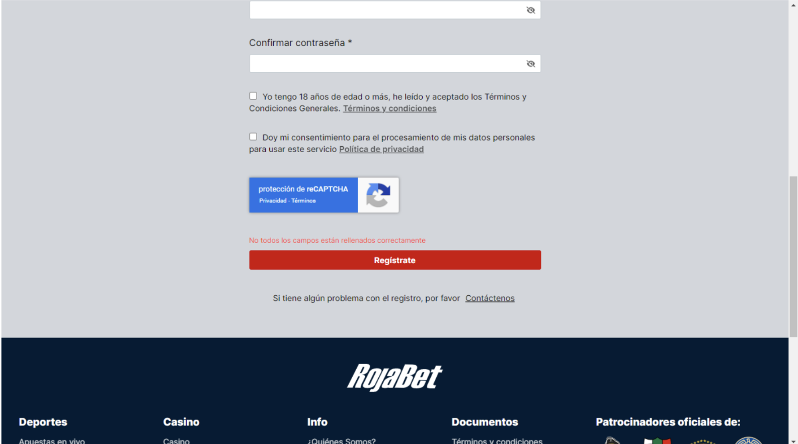Regístrate en Rojabet