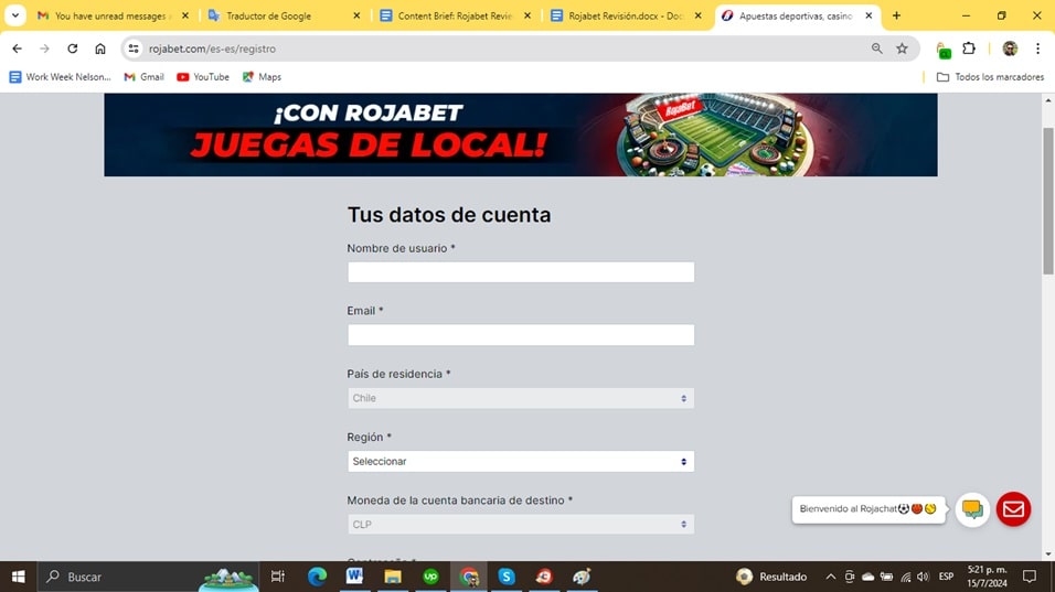 Ingresa al sitio web de Rojabet y completa el formulario de registro con tus datos personales.